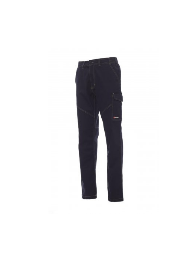 Pantalón unisex, elástico, multiestación, con elásticos laterales y trabillas en la cintura, cierre con cremallera y botón de plástico, dos bolsillos delanteros de corte clásico, un bolsillo lateral con LOCK SYSTEM, un soporte para metro; dos bolsillos traseros, uno con tapeta y velcro y otro abierto, costuras de la entrepierna e interior de la pierna con triple aguja. Aplicaciones y pespuntes en contraste, bandas reflectantes en el bolsillo trasero, costura triple. Botón con remache para el color blanco. Pespuntes y costuras a juego, con presillas en contraste de color amarillo fluorescente para el color azul marino DTM (Dye-to-match).