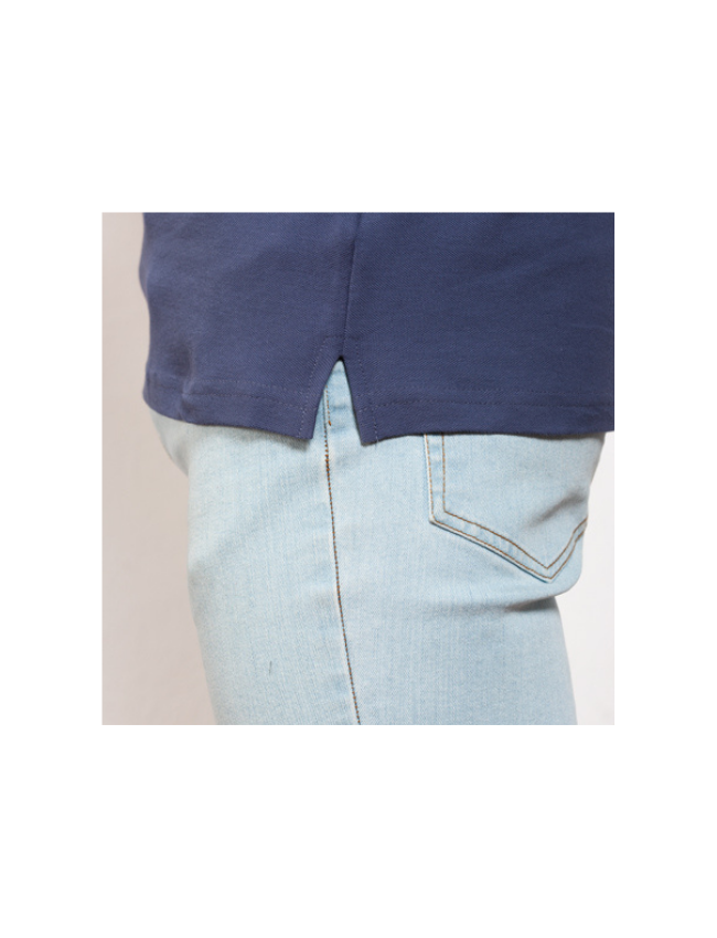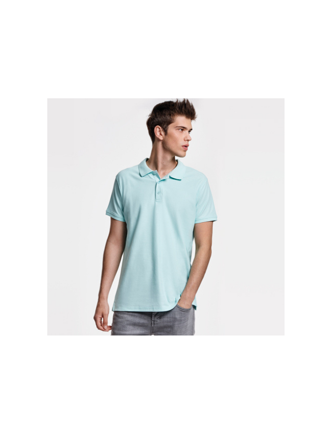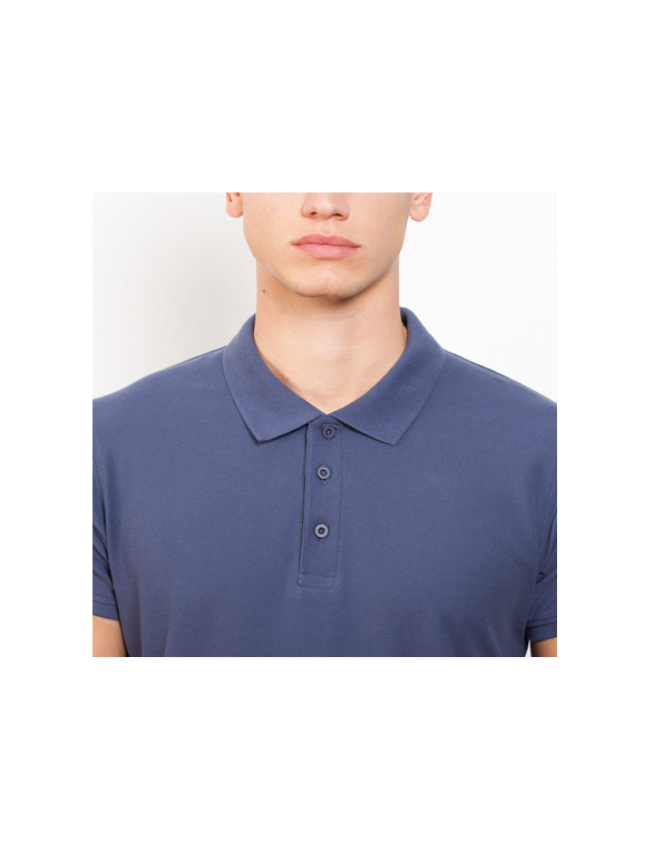 Polo de hombre de manga corta. Cubrecosturas reforzado en el interior del cuello. Ribete de manga y cuello acanalado. Costuras laterales. Tapeta con tres botones. Aperturas en los laterales del bajo.
