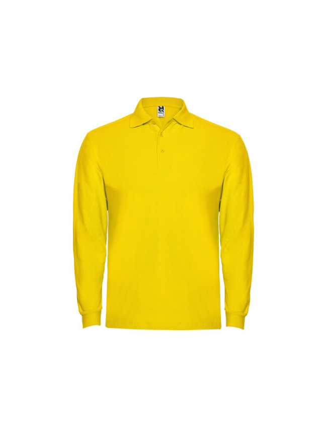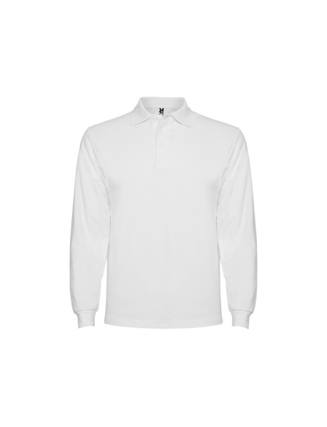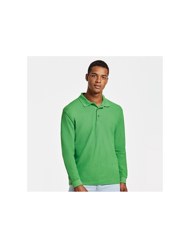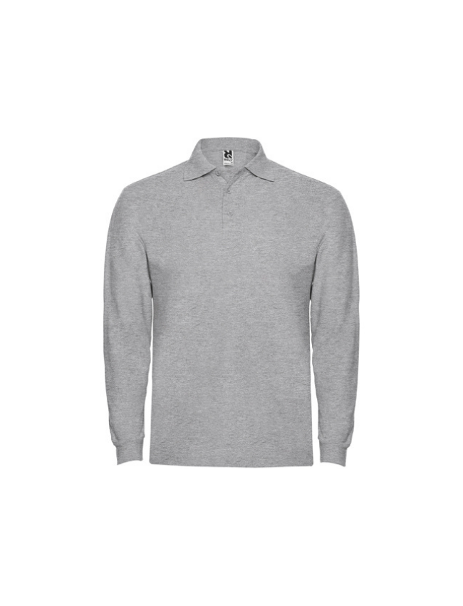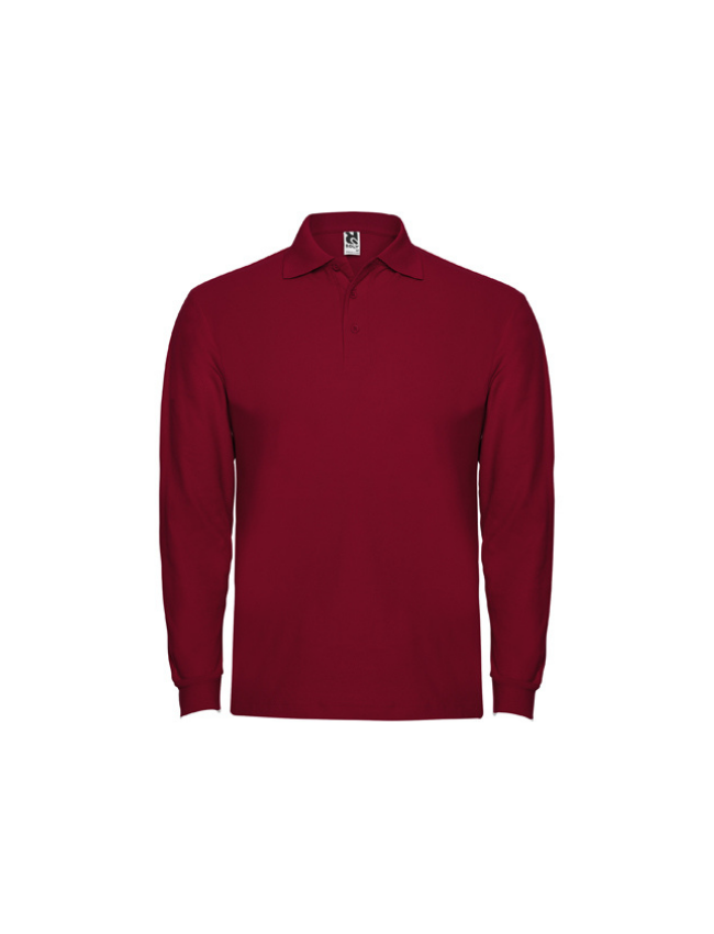 Polo de manga larga, cuello y bocamangas acanalado, tapeta de 3 botones y puños canalé 1×1 con elastano. Cubrecosturas reforzado en cuello.