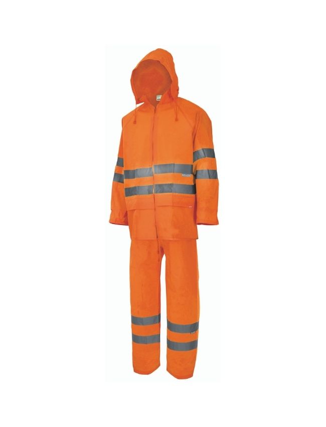 – Chaqueta: cintas reflectantes en torso y mangas, cremallera central, puño interior con goma, dos bolsillos con tapeta y capucha en el interior del cuello.