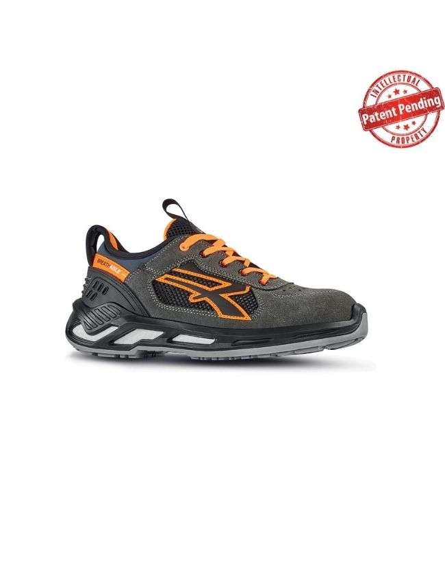 Zapatos de seguridad bajos, ligeros y cómodos U-Power de la línea Red 360, con parte superior de nailon ultraflexible y gamuza suave, collarín en lycra, escudo anti- impactos en el talón, puntera de aluminio, antiarrugas, antideslizante y suela de poliuretano PU / PU, S1P SRC ESD